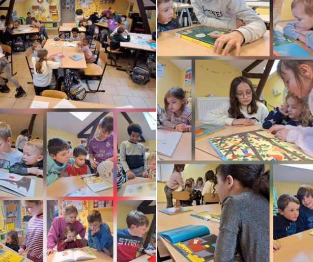 Tout au long de l’année, notre classe participe à un projet de lecture avec les élèves de 2e maternelle. Pour nous préparer, nous nous rendons à la bibliothèque afin de choisir des livres adaptés et de nous entraîner à lire.
